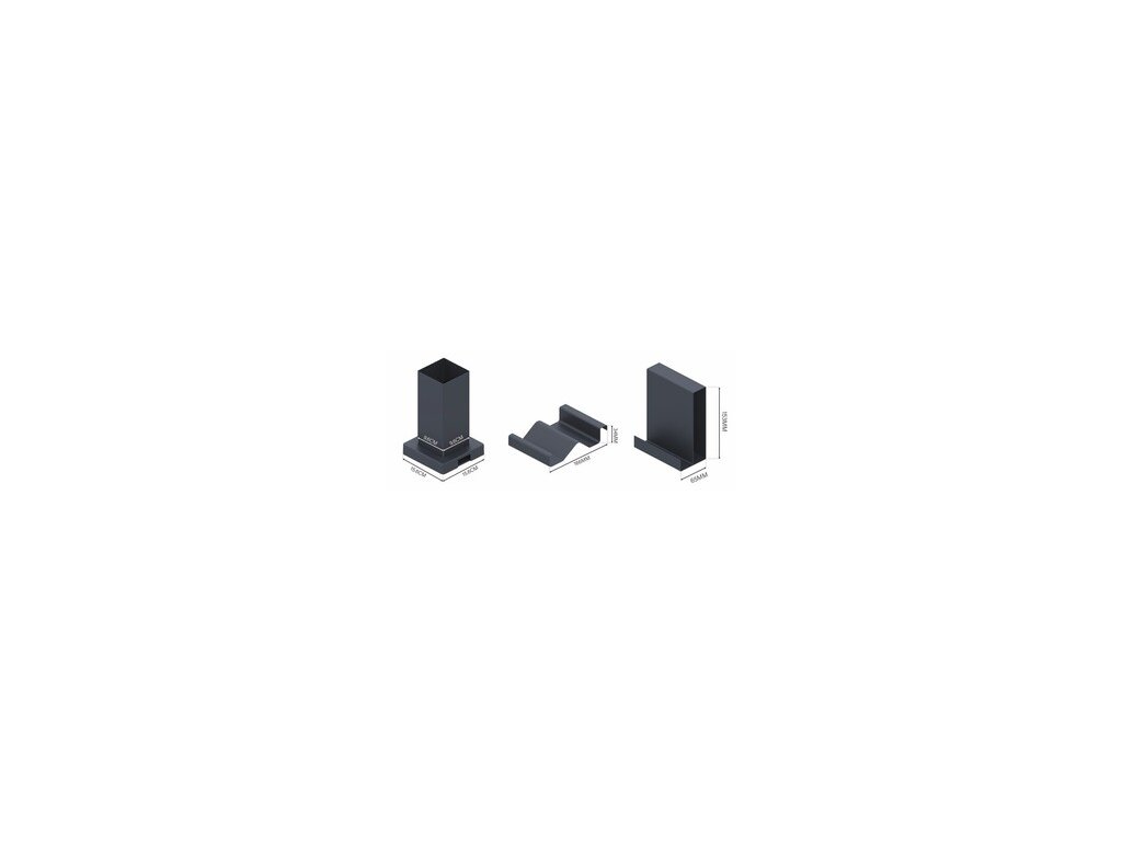 Sloupek má rozměry 96x96 mm, při instalaci je zapotřebí počítat s patkou sloupku o rozměrech 146x146 mm. Patka je z 4 mm silné oceli a je navíc zakryta hliníkovým krytem (153x153 mm) s integrovaným drenážním systémem.
