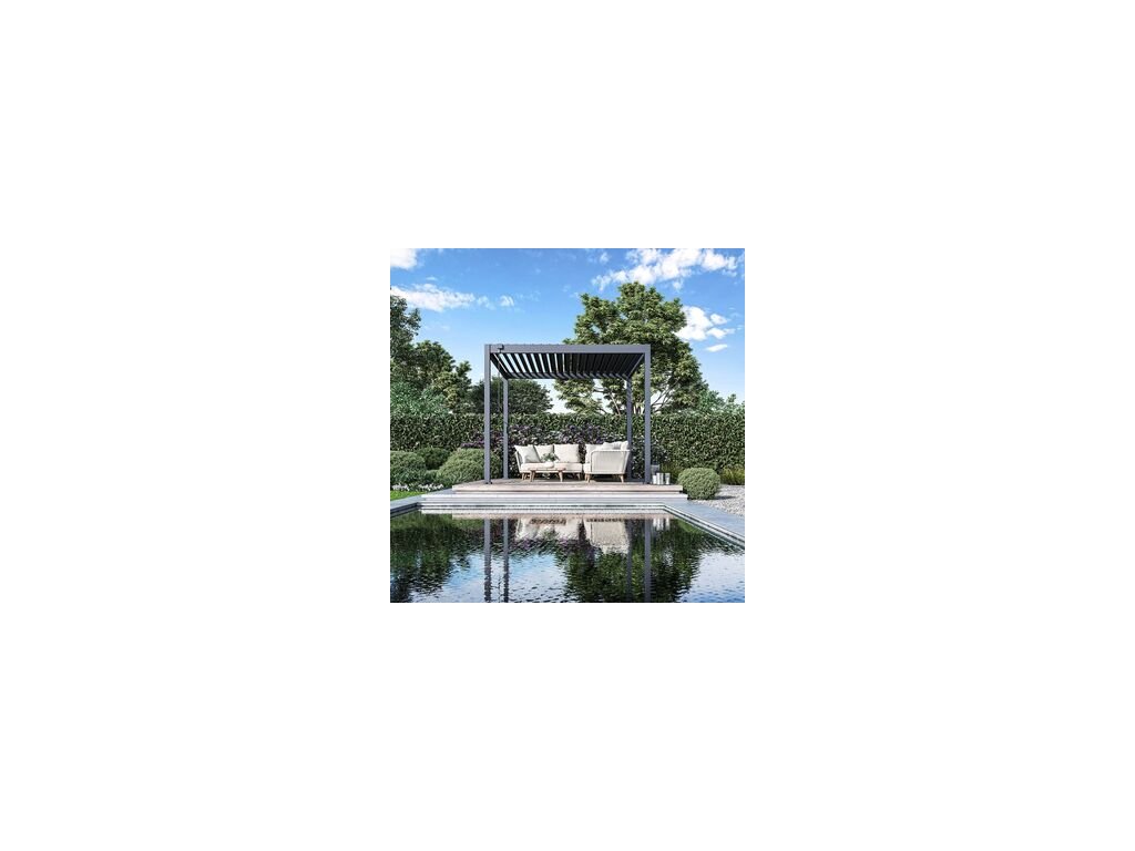 Zahradní ocelová volně stojící bioklimatická pergola o rozměrech 3 x 3 metry představuje ideální způsob zastřešení Vašeho venkovního posezení.