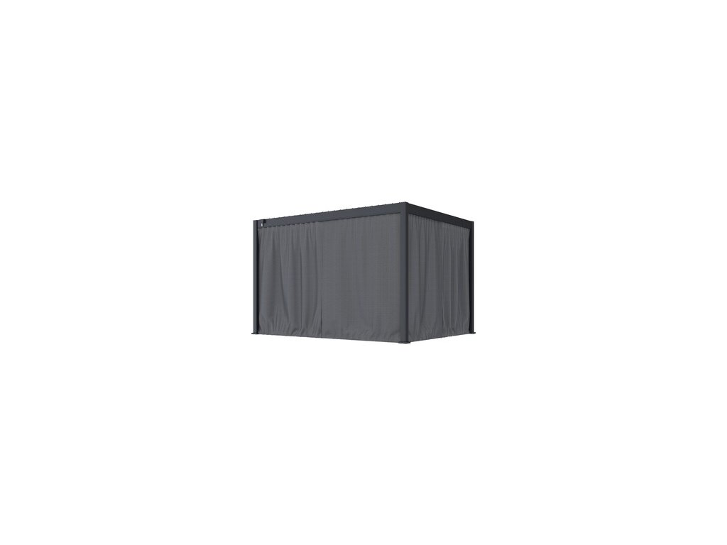 25 nastavitelných otočných lamel Vás ochrání nejen před sluncem, ale i před deštěm. Lamely lze otáčet od 0°, kdy docílíte úplně uzavřené střechy až do 90°. Lamely lze ovládat jednoduše manuálně pomocí kličky. Ta je navržena tak, aby šla jednoduše naklonit, aby při otáčení lamel nedocházelo k poškrábání konstrukce pergoly. Zároveň je klička na konstrukci umístěna tak, aby při doplnění pergoly o zástěny či panely nebránila ve snadné manipulaci s těmito doplňky. Ke svodu vody dochází unikátním drenážním systémem přímo uvnitř konstrukce. Lamely jsou schopné odvést opravdu velké množství deště až 17 l/m2 za hodinu. V zimních měsících je zapotřebí ponechat lamely ve svislé pozici. I přesto jsou lamely schopné unést 10-15 centimetrovou vrstvu sněhu, což představuje zátěž přibližně 30 kg/m2. Toto zatížení však nemůže být dlouhodobé. Dodejte své pergole ECO 4x3m a hlavně sobě větší komfort, soukromí a ochranu s praktickým setem závěsů a moskytiér (číslo produktu: ZMECO043) Díky skvělým vlastnostem, detailnímu zpracování a modernímu designu bioklimatické pergoly využijete venkovní posezení mnohem častěji. Sloupek má rozměry 96x96 mm, při instalaci je zapotřebí počítat s patkou sloupku o rozměrech 146x146 mm. Patka je z 4 mm silné oceli a je navíc zakryta hliníkovým krytem (153x153 mm) s integrovaným drenážním systémem. S bioklimatickou pergolou si můžete užívat maximum slunečních paprsků, zároveň se můžete proti těmto paprskům i chránit správným nastavením lamel. Pergola též umožňuje snadnou ventilaci prostoru a naopak dokonalý přístřešek v případě deště.