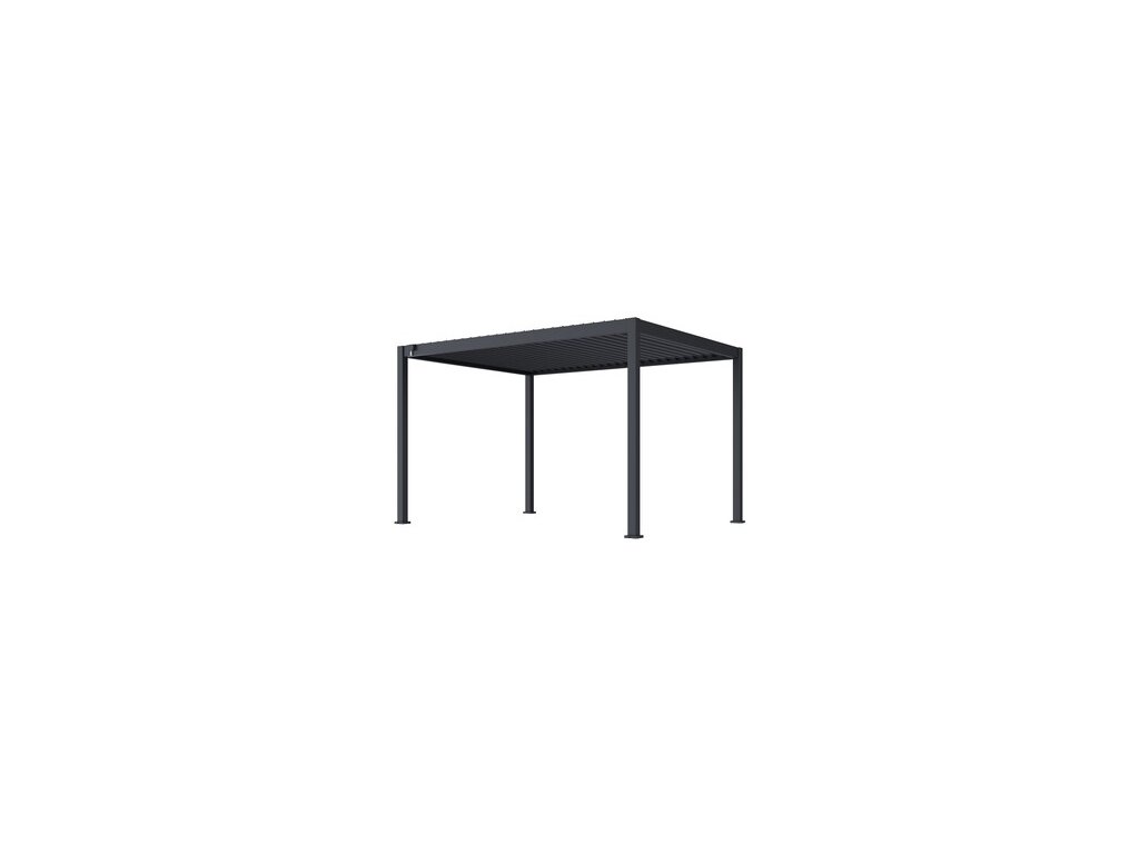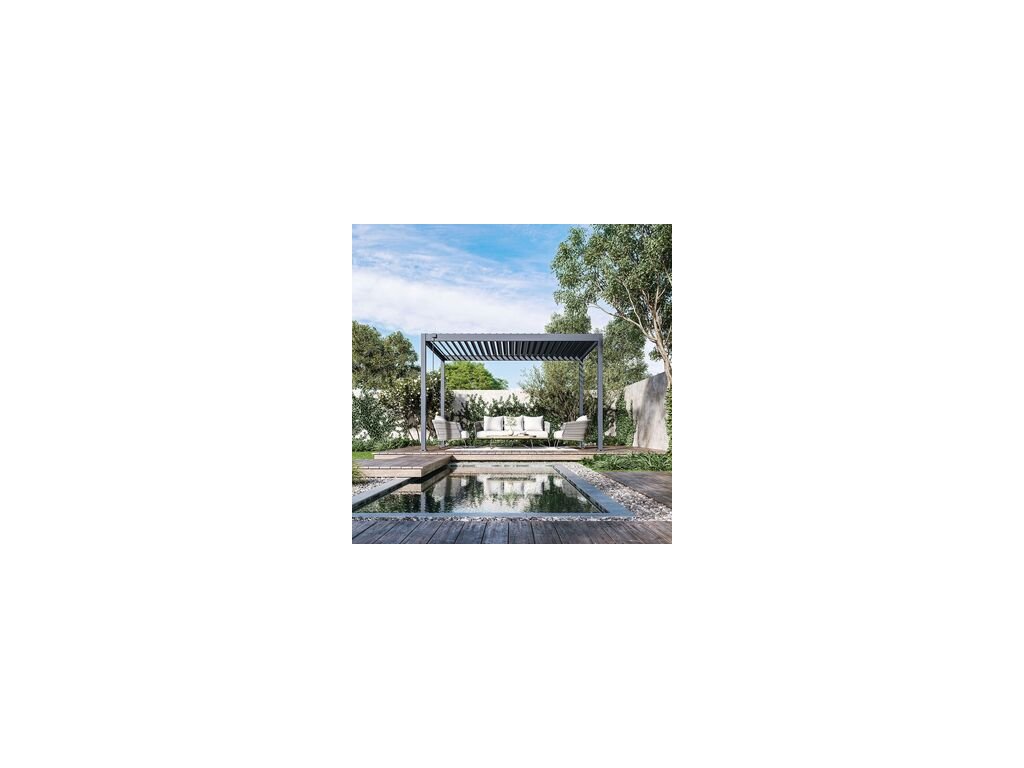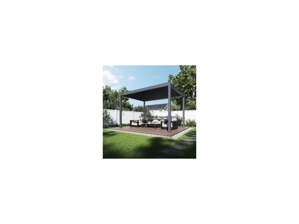 Zahradní ocelová volně stojící bioklimatická pergola o rozměrech 4 x 3 metry představuje ideální způsob zastřešení Vašeho venkovního posezení. Pevná a stabilní konstrukce v antracitové barvě RAL 7016, v matné povrchové úpravě se hodí do každého prostoru, není zapotřebí vrtat do stěny. Sloupky a nosníky jsou vyrobené z vysoce kvalitní oceli, která je ošetřena práškovou barvou. Lamely jsou z pozinkované oceli, která byla následně ošetřena práškovou barvou, což zaručuje odolnost vůči povětrnostním vlivům.