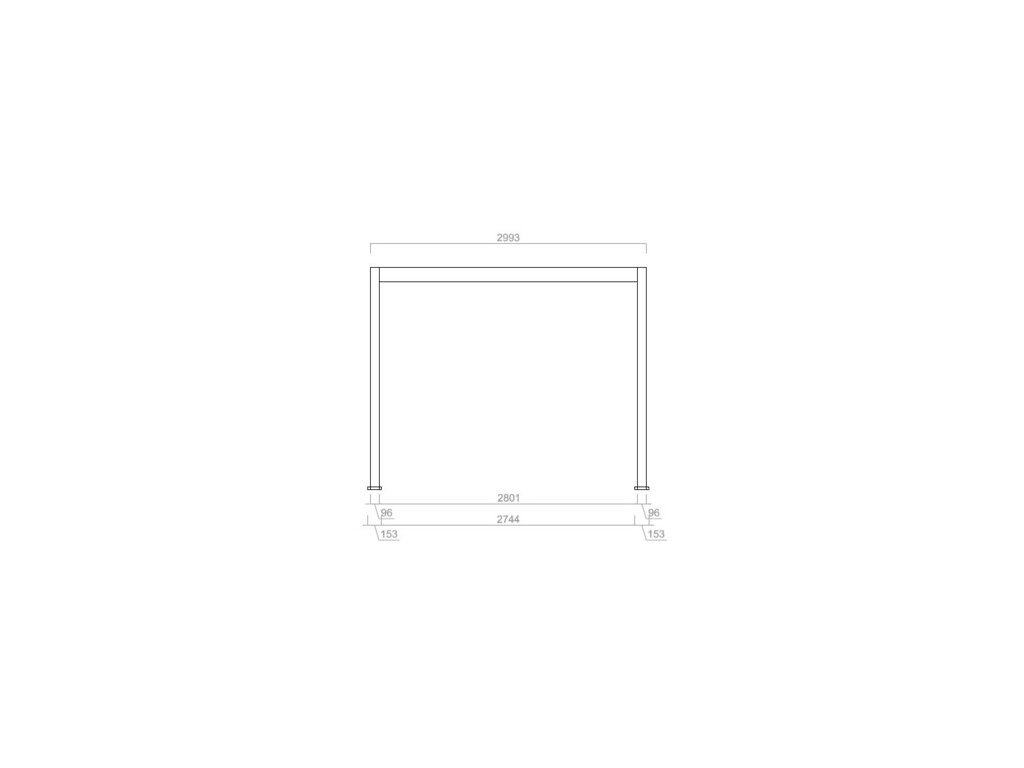 Sloupek má rozměry 96x96 mm, při instalaci je zapotřebí počítat s patkou sloupku o rozměrech 146x146 mm. Patka je z 4 mm silné oceli a je navíc zakryta hliníkovým krytem (153x153 mm) s integrovaným drenážním systémem.