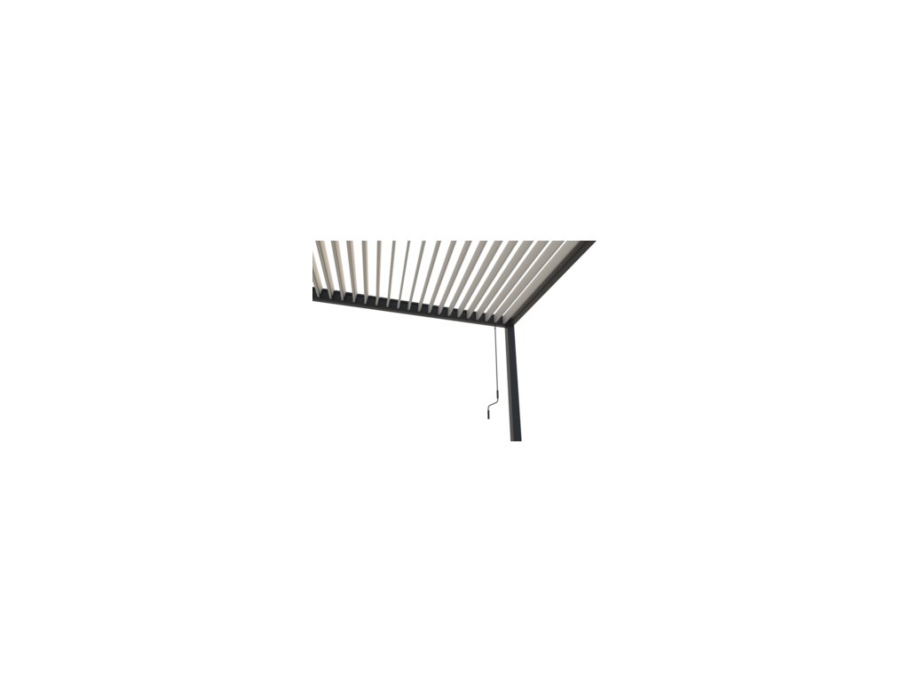 25 nastavitelných otočných dvojitých lamel (dvě vrstvy s dutým vnitřkem) Vás ochrání nejen před sluncem, ale i před deštěm. Lamely lze otáčet od 0°, kdy docílíte úplně uzavřené střechy až do 135°, díky čemuž získáte skvělou mobilitu a možnost zastínit slunce z jakékoliv strany. Lamely lze ovládat jednoduše manuálně pomocí kliky.