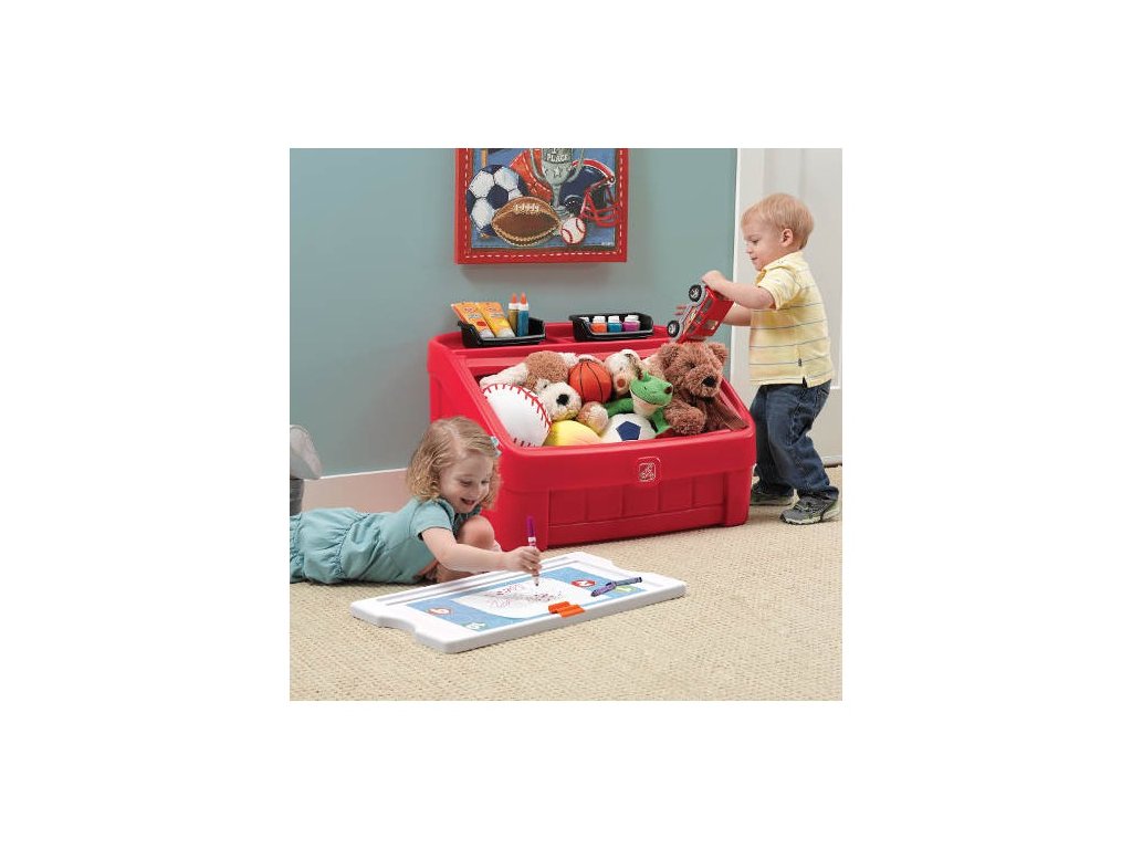 - součástí boxu jsou také dva červené odkládací boxíky na hračky nebo psací potřeby