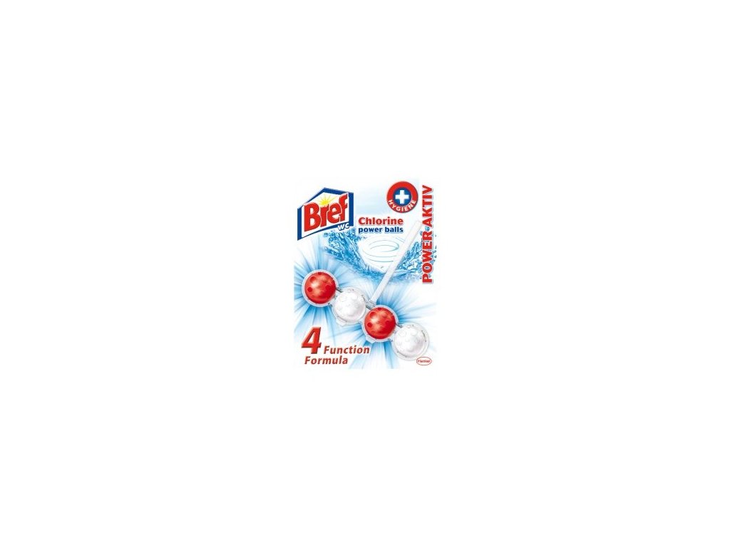 Bref Power Aktiv WC blok přináší atraktivní tvar čtyř kuliček, které čistí WC mísu s každým spláchnutím.