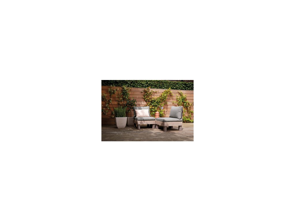 Modulární křeslo pro set ELEMENTS SIGNATURE, kterým můžete set ELEMENTS ještě více rozšířit, nebo použít samostatně. Set ELEMENTS Vám umožní uspořádat si moderní venkovní posezení dle Vašich představ. A když budete občas potřebovat více křesel místo sofa, nebo jiné uspořádání, není to pro set problém. Díky chytrému modulárnímu systému, který nabízí mnoho možných konfirgurací, jednoduše přemístíte a zacvaknete jednotlivé prvky na požadované místo. Pro ještě větší pohodlí jsou součástí soupravy 9 cm vysoké podušky a opěrky. Podušky jsou z příjemného materiálu polybavlna a spodní část je z netkané textílie s protiskluzovým tečkami. Pevný lisovaný plast, z kterého je souprava vyrobena, je odolný vůči nepříznivým povětrnostním podmínkám a UV záření.