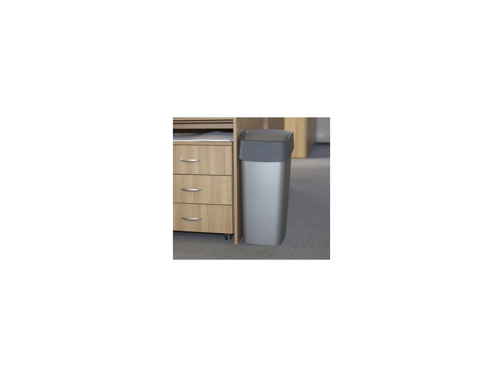 Praktický odpadkový koš Flipbin Curver v stříbrno-šedé barvě. Trendy barvy. Dva stupně otevření víka. Pro drobnější odpad lze použít první stupeň tzv. malé otevření na 78°, pro větší odpad velké otevření na 100°. Tento systém pomůže udržet víko čisté.