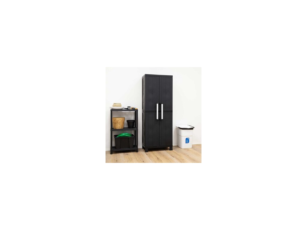 Praktická plastová dvoukřídlá skříňka GARAGE MIDI HIGH v černé barvě. ODOLNÝ RECYKLOVANÝ MATERIÁL Skříňka GARAGE MIDI HIGH je vyrobena z vysoce kvalitního recyklovaného materiálu, který zaručuje nejen dlouhou životnost, ale také podporuje naši snahu o udržitelnost a ochranu životního prostředí. Jednoduché otevírání prostřednictvím hliníkových rukojetí. SNADNÁ MONTÁŽ Díky jednoduché montáži za pomocí standardního nářadí je instalace skříňky GARAGE MIDI HIGH hračkou. Ušetříte čas i energii pro to, co je skutečně důležité - Vaše práce a Vaše projekty. JEDNODUCHÁ ÚDRŽBA S možností snadné údržby pomocí mýdlové vody a hadříku je udržování skříňky GARAGE MIDI HIGH pro pohodlný provoz snadné a nenáročné. Jednoduchý úklid podlahy pod skříní díky zvednutým nohám. To znamená, že se můžete plně soustředit na svou práci bez starostí o udržování skříně. NASTAVITELNÉ POLICE Skříňka je vybavena čtyřmi nastavitelnými policemi, z nich každá unese až 15 kg nářadí a pracovních pomůcek. Dává Vám možnost flexibilně uspořádat vnitřní prostor podle Vašich individuálních potřeb. Pravá část skříňky může být využita pro uskladnění například koštěte či jiného delšího náčiní. MAXIMÁLNÍ STABILITA S možností přišroubování skříňky ke zdi získáte ještě větší stabilitu a důvěru, že Vaše vybavení je v bezpečí a pevně uloženo i v rušných pracovních prostředích. CERTIFIKACE Skříňka GARAGE MIDI HIGH je pyšná držitelka certifikace TÜV SÜD, což znamená, že splňuje nejpřísnější mezinárodní standardy kvality, bezpečnosti a spolehlivosti. BEZPEČNÉ UZAMYKÁNÍ Možnost uzamčení skříňky GARAGE MIDI HIGH poskytuje klid a jistotu, že Vaše cenné nástroje a vybavení jsou vždy v bezpečí a pod Vaší kontrolou. Nenechte si uniknout příležitost vyzkoušet GARAGE MIDI HIGH - skříňku, která dokonale kombinuje praktičnost, dlouhou životnost a bezpečnost pro Vaši dílnu, garáž, zahradní domek nebo provozní halu.