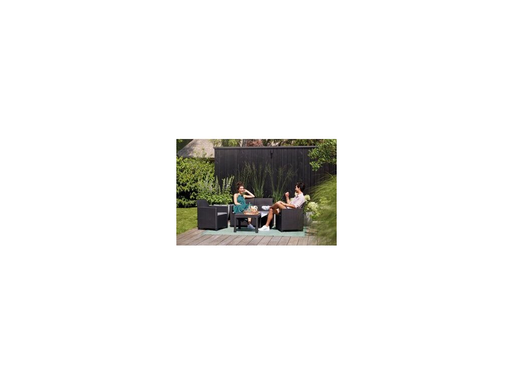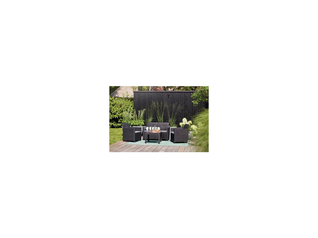 Proměňte svou terasu, balkon nebo dvorek soupravou Marie, která je vyrobena z lisovaného plastu v imitaci přírodního ratanu. Souprava se skládá ze 2 křesílek, dvojmístného sofa a stolku.