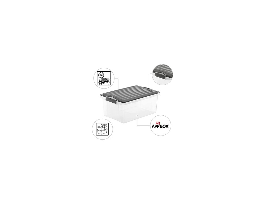 Úložný box o objemu 38L. Transparentní box + šedé víko. Víko je opatřeno klipy proti nežádoucímu otevření. Kvalitní materiál a provedení.